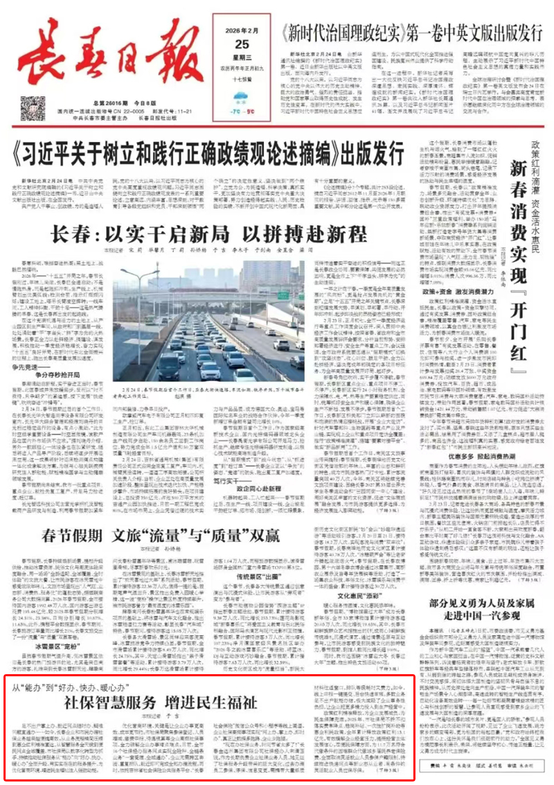 足不出户掌上办、就近网点随时办、疑难问题直通办……如今,长春企业和市民办理社保业务越来越便捷高效。从业务流程精简压缩到惠企红利精准直达,从智慧服务全天候到便民网点全域覆盖,市社保局以数字化转型为抓手,持续推动社保服务从“能办”向“好办、快办、暖心办”全面升级,用实实在在的服务提升,为优化营商环境、增进民生福祉注入强劲动能。