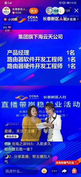 “欢迎来到长春新区‘直播带岗’线上招聘会,今天来我们直播间招聘的企业都是新区知名企业,正在找工作的你可千万不能错过……”2月26日,长春新区举办“直播带岗”稳就业招聘会,主播与求职者在直播间火热交流,推动企业用工和求职者精准对接,来自新区的40多家知名企业共为求职者们提供800余个就业岗位,“云端”引才的开门红拉开了长春新区2021年“慧谷引凤”行动的帷幕。2021年,长春新区将以28条具体举措推动“慧谷引凤”行动聚人才、稳就业、促发展,为加快推进长春国家区域创新中心建设、推动长春新区高质量发展提供有力的人才保障和智力支撑。