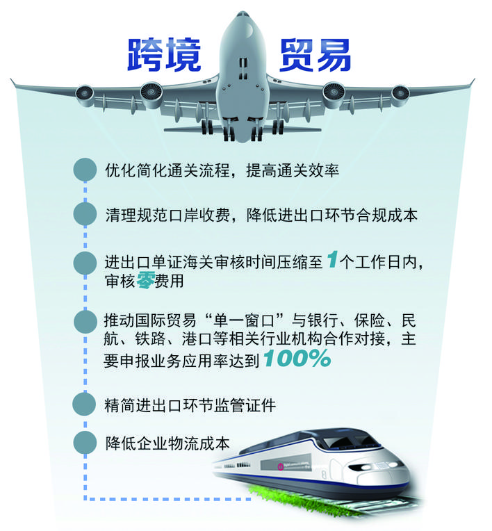 依法削减进出口环节审批事项,取消不必要的监管要求,优化简化通关流程,提高通关效率,清理规范口岸收费,降低进出口环节合规成本。进出口单证海关审核时间压缩至1个工作日内,审核零费用。推动国际贸易“单一窗口”与银行、保险、民航、铁路、港口等相关行业机构合作对接,主要申报业务应用率达到100%。